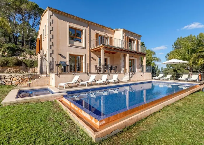 Villan Finca Es Foners Felanitx med 5 sovrum, som ligger inom 2 km från Felanitx kyrka, har en pool med bubbelpool och hydromassagebadkar. Den här villan med 5 badrum, som erbjuder tillgång till en terrass, ligger cirka 10 minuters bilresa från Santuario de San Salvador.